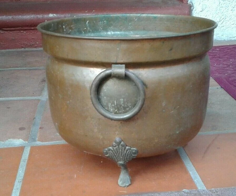 Vintage Big Planter Pot Solid Copper Brass 12 Inch Arts Amp Crafts Mission Style Ebay